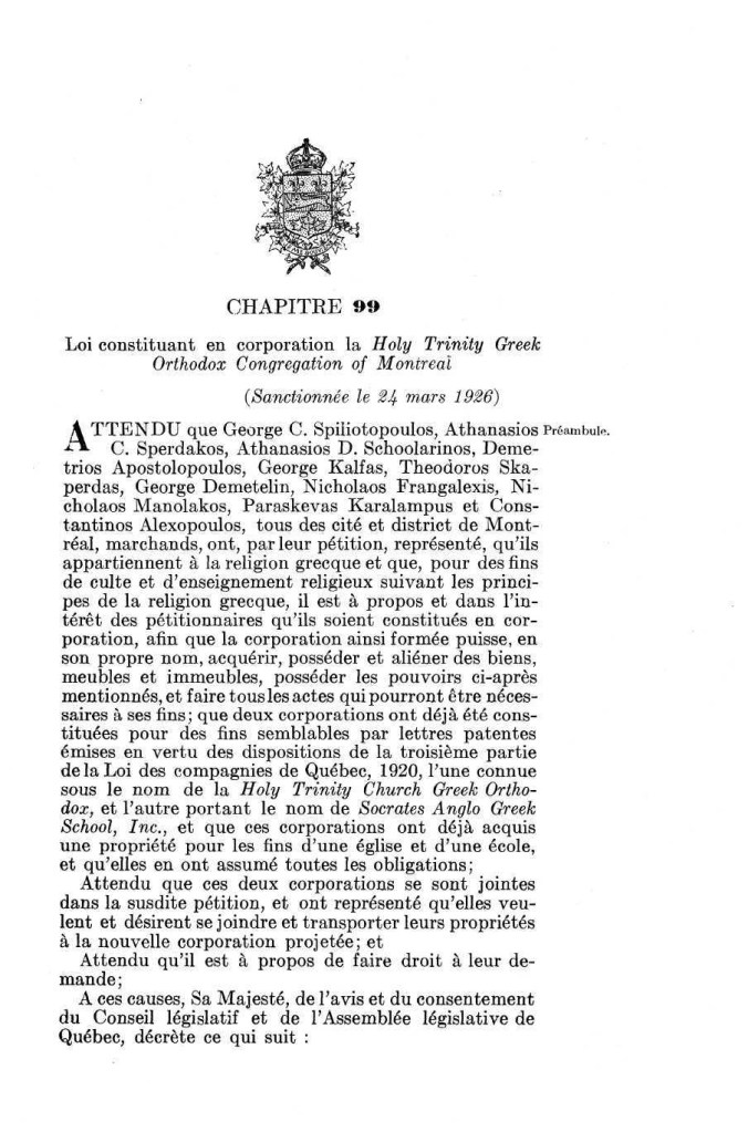 Hellenic Community of Greater Montreal incorporated 95 years ago